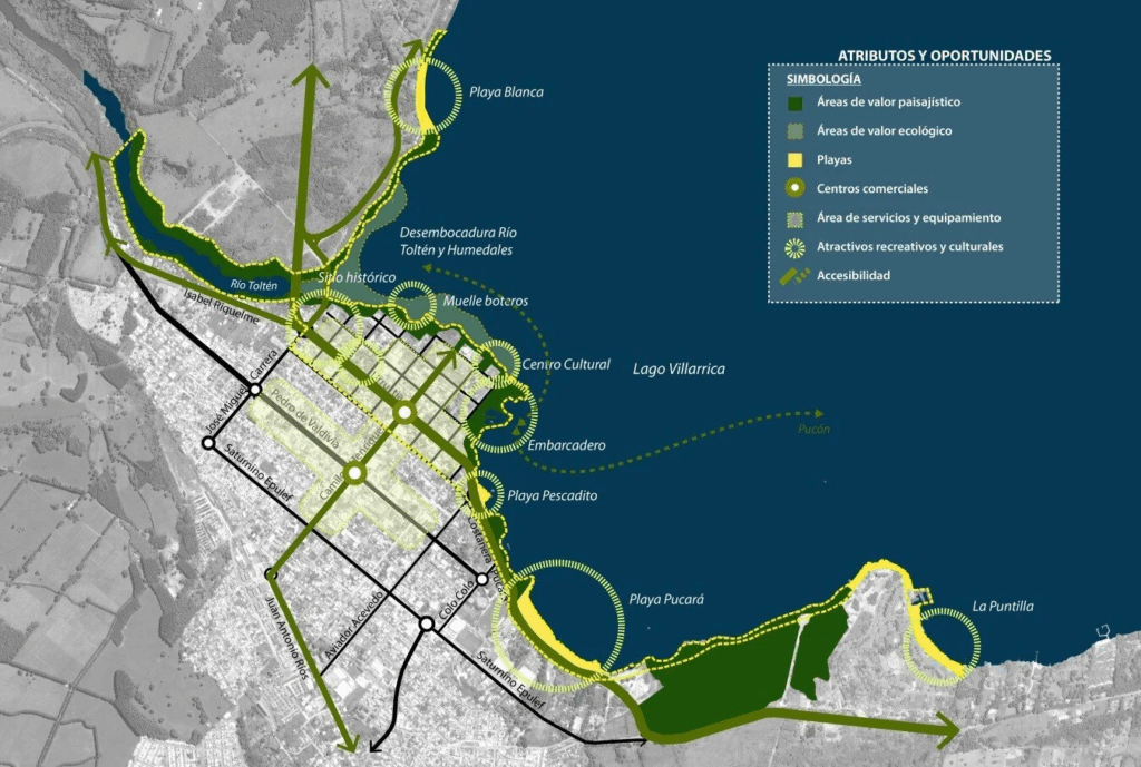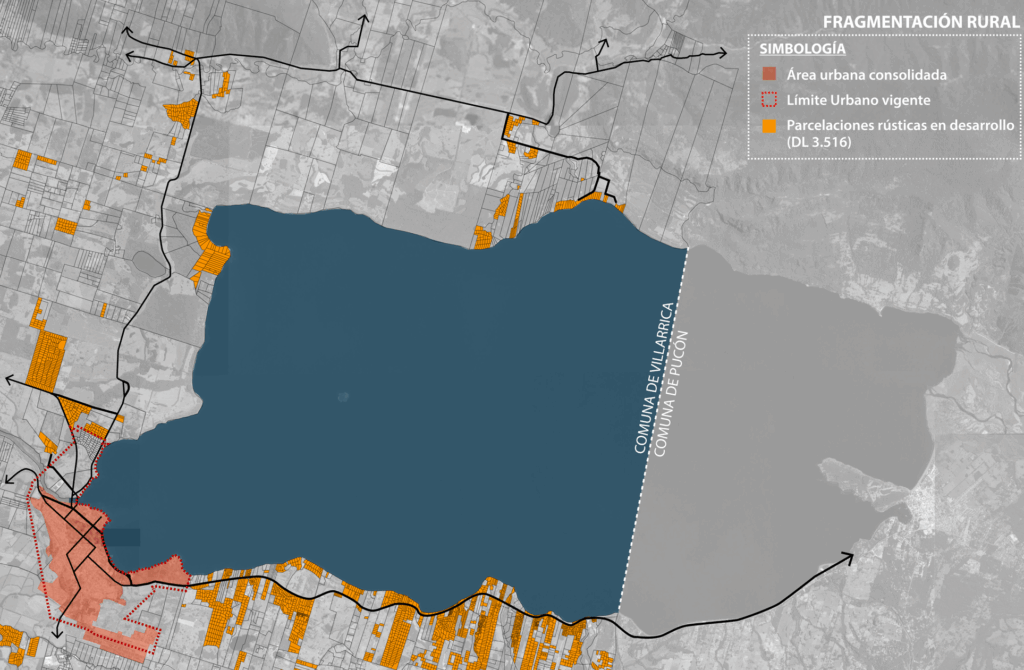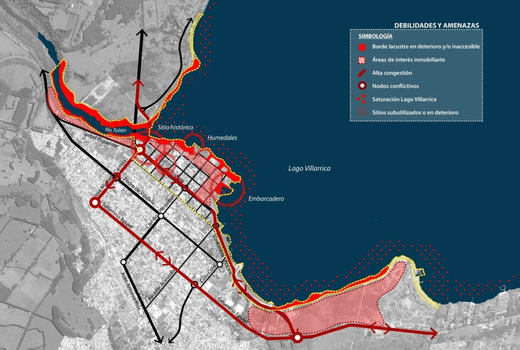 Sin embargo, estos atributos se ven opacados por un tipo de desarrollo inmobiliario disperso que genera congestión y degradación del borde lacustre y sus espacios públicos; una explosiva expansión de las parcelaciones rústicas que degradan el borde lacustre oriente y norte; y la generalizada contaminación del Lago Villarrica, lo que lo ha llevado a ser zona saturada.